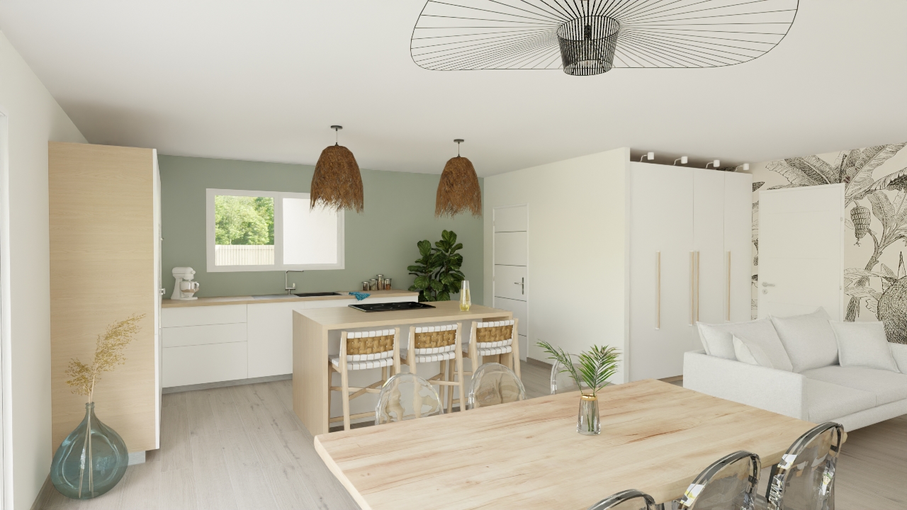 Cette construction neuve, implantée en Vendée sur une parcelle de 525 m², a été pensée pour répondre à une démarche d’investissement locatif. Le client souhaitait une maison d’environ 100 m² qui combine des éléments architecturaux traditionnels pour s’intégrer harmonieusement dans son environnement et des lignes plus contemporaines, apportant une lecture moderne du bâti.